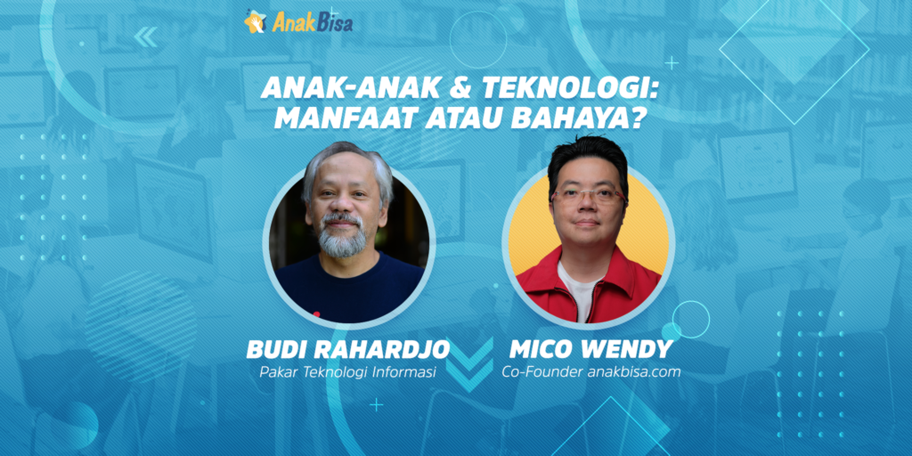 Dari kecil, anak-anak kita sudah mendapat akses ke handphone, tablet, komputer, game console, dan seterusnya. Begitu lahir, mereka langsung kenal teknologi. Ini sebetulnya bagus (manfaat) atau bahaya? Diskusi bersama Mico Wendy (Co-Founder anakbisa.com) dan Budi Rahardjo (Pakar Teknologi Informasi). Bapak Budi Rahardjo sudah berkecimpung di dunia informasi dan