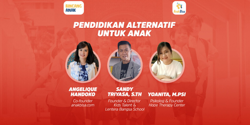 Bincang Anak yang membahas hal-hal berkaitan dengan Pendidikan Alternatif untuk Anak bersama Bapak Sandy Triyasa, S.Th (Founder & Director Kids Talents & Lentera Bangsa School) dan Ibu Yoanita, M.Psi (Psikolog dan Founder Hope Therapy Center). Semua orang tua pasti ingin menyekolahkan anaknya di tempat yang