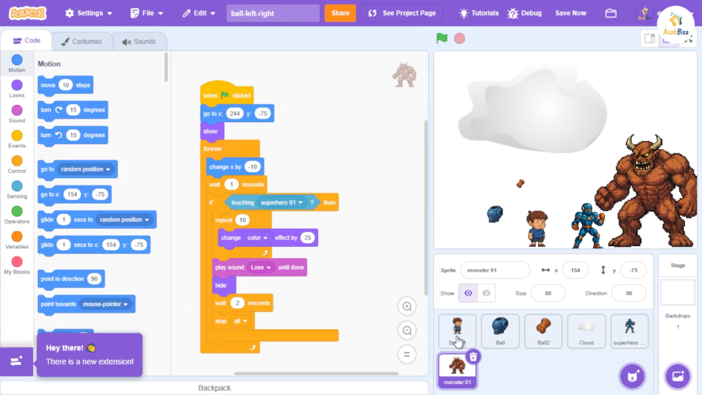 Dari Nonton Superhero ke Bikin Game Superhero Sendiri Banyak anak suka nonton film superhero, tapi bagaimana kalau mereka bukan hanya menonton, melainkan ikut membuat game superheronya sendiri?Di video yang saya lampirkan di sini, saya menunjukkan proses membuat game sederhana: seorang anak dengan armor yang berubah