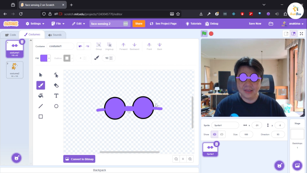 Berkenalan dengan Face Sensing di Scratch: Bikin Filter Kacamata & Game Interaktif dengan Wajah Scratch sekarang punya fitur baru yang seru banget: Face Sensing. Dengan extension ini, kamera/webcam bisa dipakai untuk mendeteksi wajah dan menggerakkan sprite mengikuti hidung, mulut, atau mata kita. Hasilnya? Anak-anak bisa